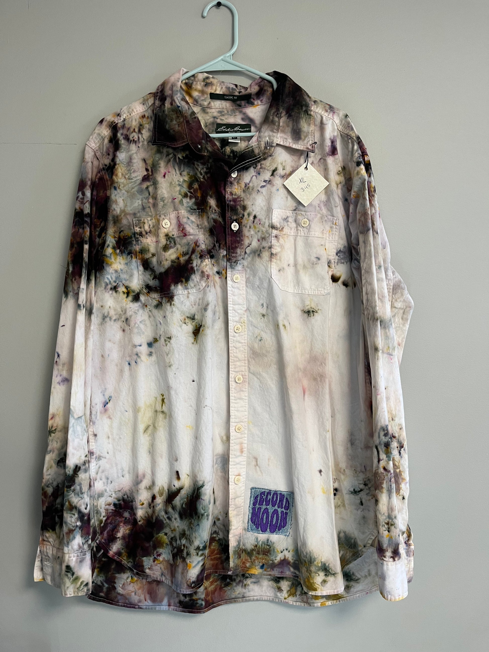 XL Eddie Bauer button down hand dyed using ice dye method to achieve maximum marbling